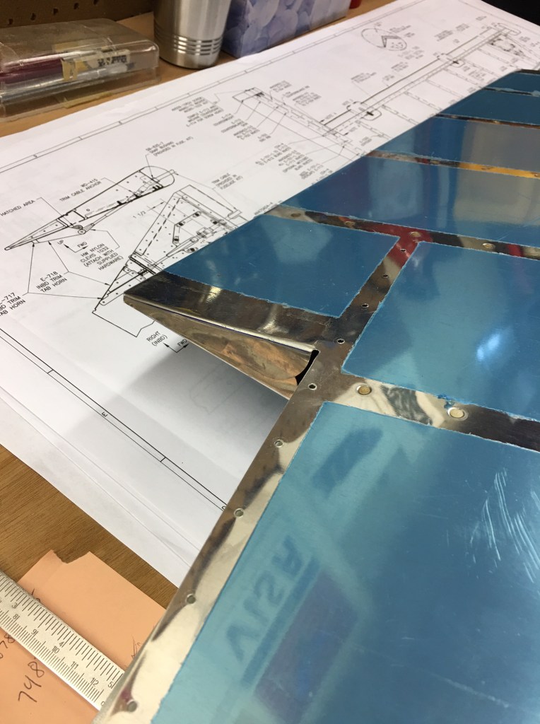 The objective is for the skin to be flat and straight right up to the point where the edge radius begins. This results in the best aerodynamic surface and also reduces the stresses on the aluminum skin during flight. The elevators are subjected to quite a bit of abuse during flight from the pounding of the propeller and the forces from maneuvering.