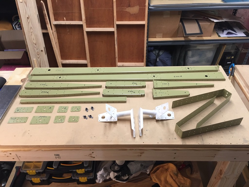 Here are all of the skeleton parts for both elevators, primed and ready for assembly: