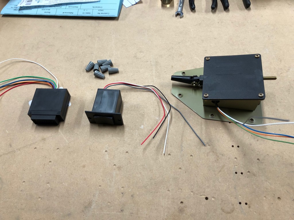 In today’s build session, I set up the elevator trim. This task started with the temporary wiring of the electric trim servo to the trim switch, the trim indicator, and a 12 volt bench power supply.