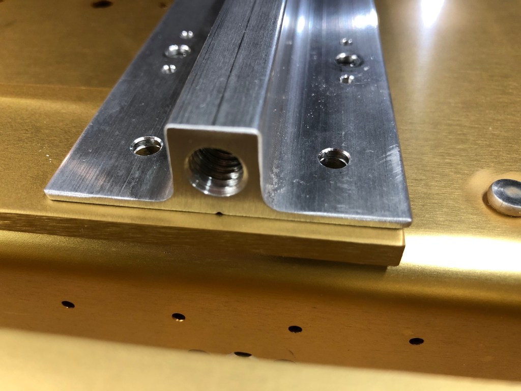 The interior hole in the tie-down bar needs to be tapped to create threading for the attachment of a tie-down ring. Here is what the tapped hole looks like.
