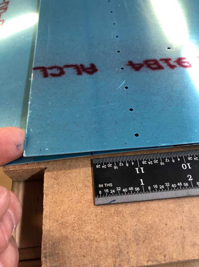 The doubler is flush with the wing skin along the inboard edge. Its forward edge is 9/16″ back from the leading edge of the wing skin.