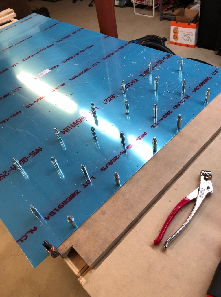 The drilled wing-walk and top skin can then be clecoed to the wing skeleton for final drilling.