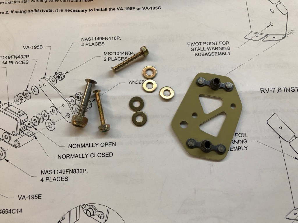 The first task is to rivet the plate-nuts onto the main bracket. These are used to fasten the stall warning assembly to the special rib made for mounting this assembly to the wing.