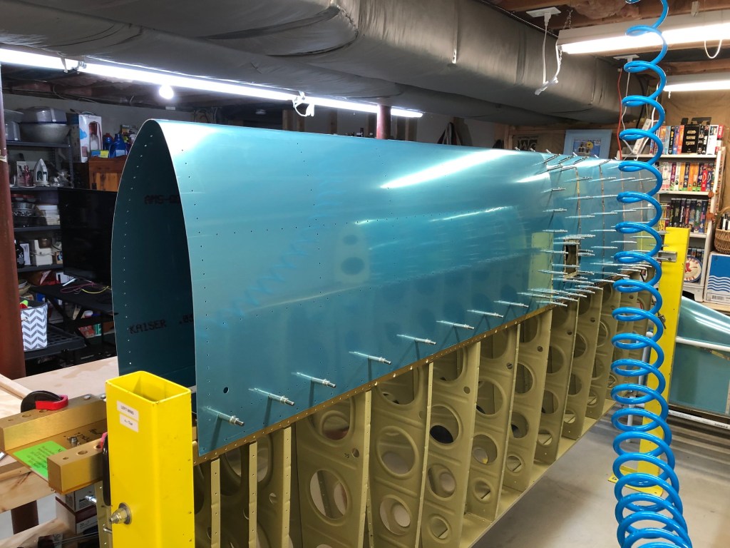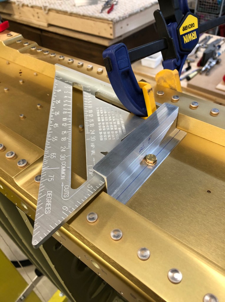 Without fully assembling the tanks, I placed the tank skin and the rear baffle onto the wing and aligned the skin to the leading edge that it abuts.
